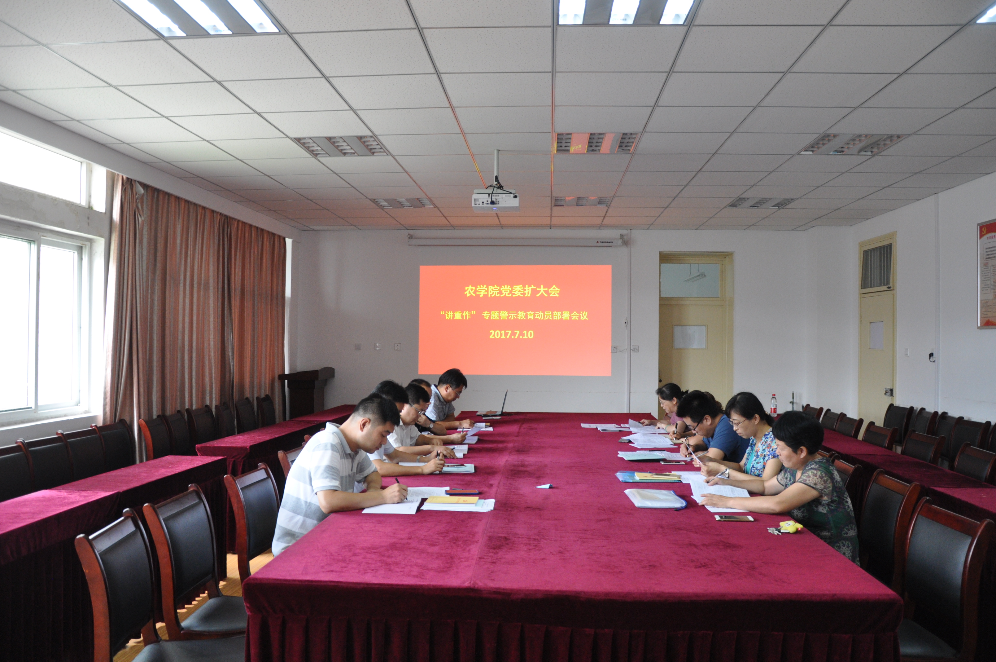 7月10日下午,农学院党委在十教518召开党委(扩大)会议,开展 “讲政治、重规矩、作表率”专题警示教育部署会议,进一步推进“讲重作”专题警示教育。会议由农学院党委书记汪凤莲主持,院全体党委委员和支部书记参加了会议。