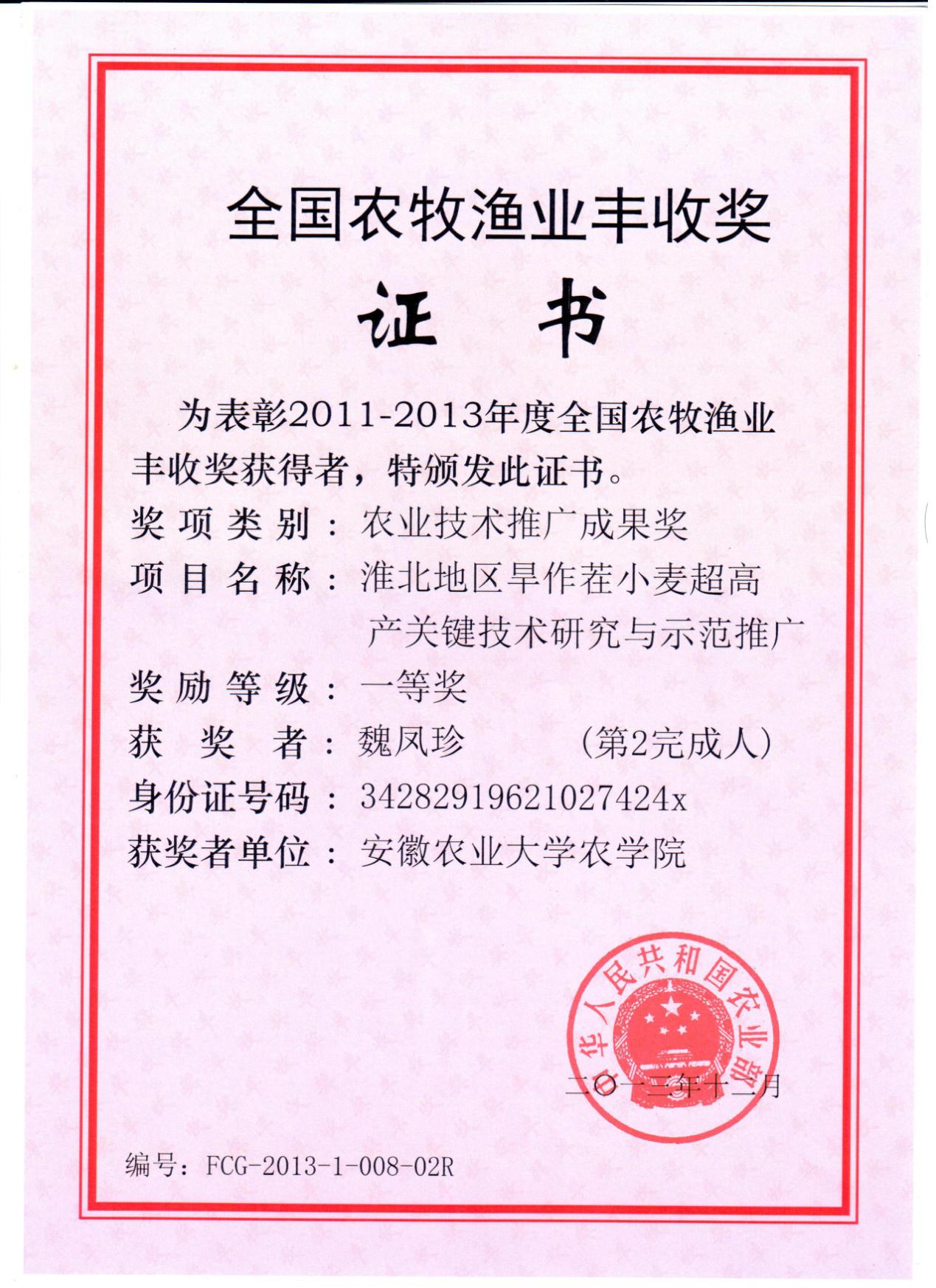 五是研究制定了适合淮北地区生态条件的《淮北地区旱作小麦超高产栽培技术规程》、《新麦18高产栽培技术规程》、《烟农19高产栽培技术规程》3项地方标准,构建了指标化、标准化超高产小麦量质协调栽培技术体系。示范区实现了多年多点超过亩产600公斤指标,创造了万亩平均亩产641.4公斤,百亩攻关田亩产达到718.2公斤的超高产典型,进一步发掘出优势产区小麦生产潜力,引领小麦丰产科技进步,促进了主产区小麦生产整体水平的提升。